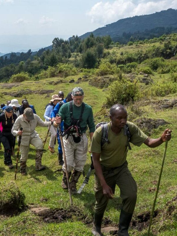 Nach einem frühen Frühstück werden Sie von Ihrem Guide abgeholt und zum Parkbüro gebracht. Dort erhalten Sie eine ausführliche Einweisung in das bevorstehende Gorilla-Tracking-Erlebnis und Ihnen werden persönliche Träger für das Trekking zugeteilt. Anschließend beginnt Ihr unvergessliches Abenteuer: Sie wandern durch die üppigen Wälder an den Hängen der Virunga-Vulkane und genießen dabei spektakuläre Ausblicke in alle Richtungen.